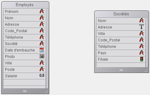 L’exemple ci-dessous montre un lien entre la table [Employés] et la table [Sociétés], affiché dans l’éditeur de structure :