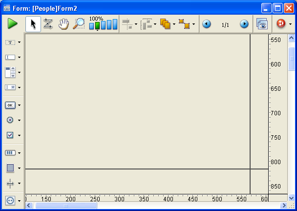 Each form has a maximum area of about 1245 square feet. You scroll to bring hidden portions of the form into view. For viewing on screen, your form design can use this entire area. You can scroll to view any element you place in the form.