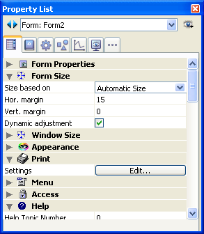 To do this, click on the Settings/Edit... button in the “Print” theme of the Property List of the form (see Form properties).