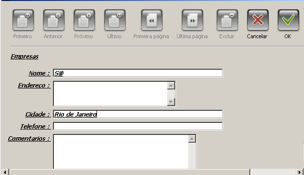 4D mostra o formulário de entrada da tabela atual numa janela Buscar por formulário. Só aparecem ativos os botões Aceitar e Cancelar.
