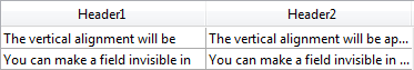 • Quando aplicado a colunas de tipo Texto ou String, a opção Truncate with ellipsis está disponível só se a opção Wordwrap não estiver marcada.Quando a opção Wordwrap estiver marcada, conteúdos extras nas células são lidados através de propriedades de ajuste de linha, assim a opção Truncate with ellipsis não está disponível.