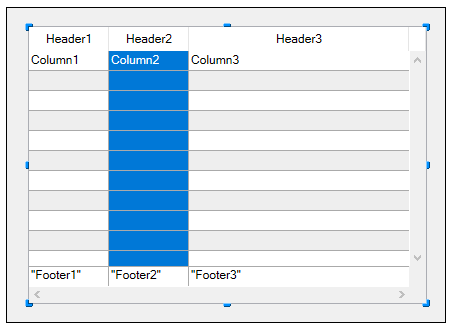É possível selecionar uma coluna de list box no editor de formulários clicando na coluna quando o objeto de list box está selecionado: