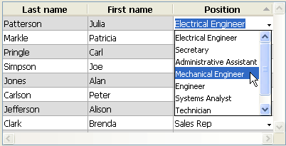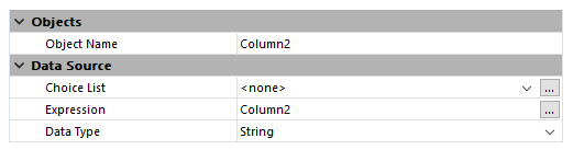 Caso se passe uma expressão não atribuível (por exemplo [Person]FirstName + "" + [Person]LastName), a coluna não é editável mesmo se a opção Enterable estiver marcada.                        Caso se utilize um campo, variável, uma expressão atribuível (por exemplo Person.lastName) for usad, a coluna será editável ou não dependendo da opção Editável