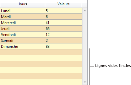 Attention : la hauteur minimum en pixels des en-têtes dépend du système. Si vous passez une valeur trop petite, elle sera remplacée par la taille minimum définie dans le système pour les en-têtes. Il n’y a pas de taille minimum pour les pieds et les lignes.