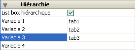 • Lignes déplaçables (list box de type tableau uniquement) : autorise le déplacement de lignes en exécution. Cette option est cochée par défaut. Cette option n’est pas disponible pour les list box de type sélection ni pour les list box en mode hiérarchique (option List box hiérarchique cochée).