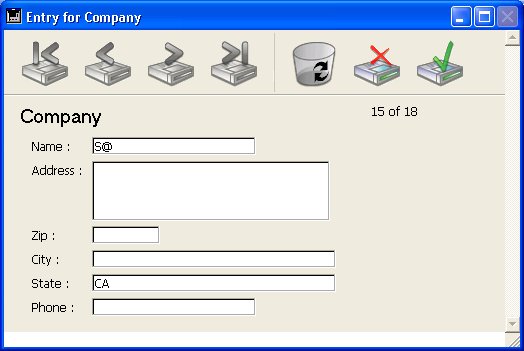 The following figure shows the Query by Example window being used to search for all companies whose names begin with “S”.