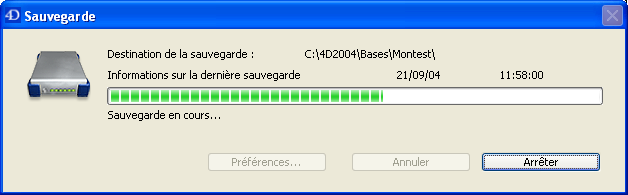 Note 4D Server : Il est possible de déclencher “manuellement” une sauvegarde depuis un poste distant, via une méthode appelant la commande BACKUP. Dans tous les cas, la commande sera exécutée sur le serveur.
