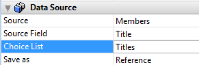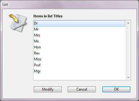 You want to use a "Title" field to characterize people: Mr, Ms, but also Dr, Mgr, Hon, and so on. To do this, you create a longint type field named "Title". You define a choice list (named "Titles") containing all the possible titles, then you associate it with the field.
