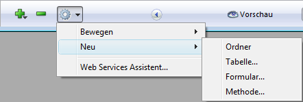 Über den Eintrag Neu> im Kontextmenü der Seite Home können Sie nicht nur Ordner, sondern auch Tabellen, Formulare und Projektmethoden erstellen. Wählen Sie einen der Untereinträge aus, erscheint direkt das entsprechende Fenster zum Erstellen des Objekts.