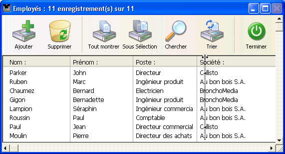 L’utilisation type du séparateur est le formulaire de sortie dans lequel les colonnes peuvent être redimensionnées :