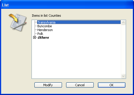 If a list is modifiable, the Modify button is enabled in the List dialog box when using the database.