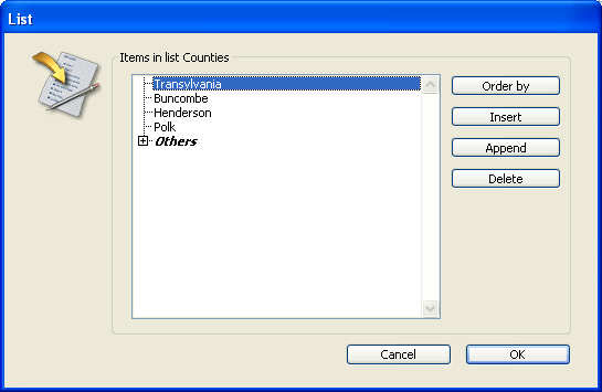 If you allow a list to be user modifiable, the user has access to a special List editor when using the database. The special List editor is for the assigned list only. The user cannot add lists, delete lists, or change any other list. If a list is modifiable, the user can make any necessary changes to that list’s items.