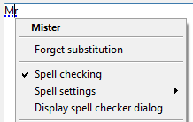 To display the spell check options, you can right-click on an unknown word and a context menu containing spell checker commands appears: