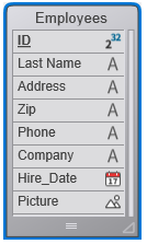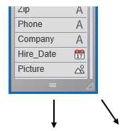 テーブルにフィールドを追加するときや、テーブルのサイズを小さくしたときなど、テーブルイメージが表示できるよりも多くのフィールドがテーブルに含まれることがあります。このような場合、4Dは自動でスクロールバーを追加し、フィールドリストをスクロールして表示できるようにします: