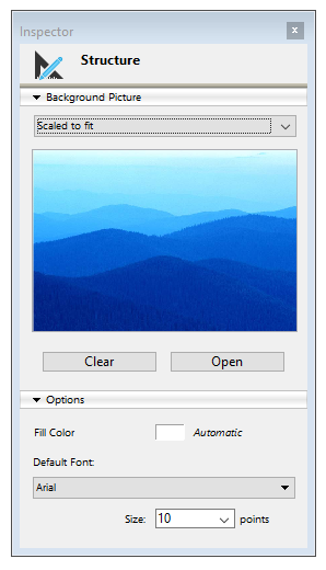 • ウィンドウの空のエリアで右クリックをし、コンテキストメニューからストラクチャープロパティコマンドを選択します。