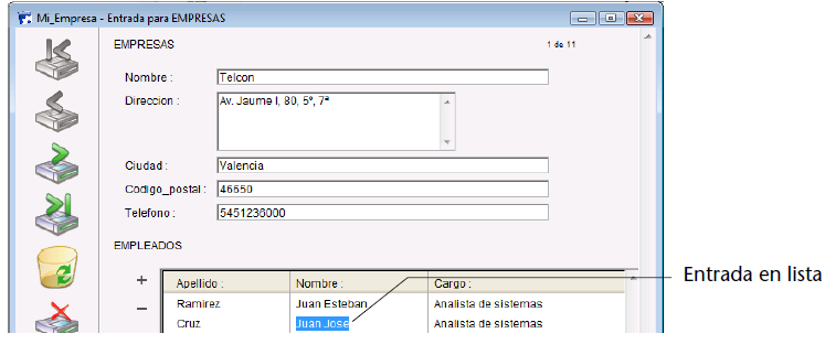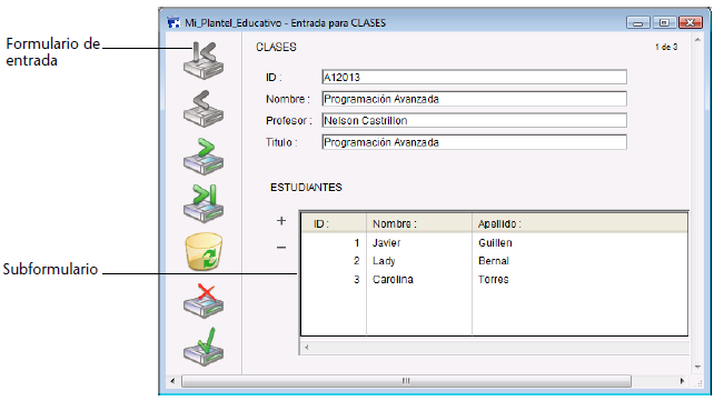 Dependiendo de la configuración del subformulario, el usuario puede mostrar el formulario detallado haciendo doble clic en un subregistro o utilizando los comandos para añadir y modificar los subregistros.