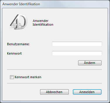Sie können das Icon im Kennwortdialog durch ein eigenes ersetzen. Standardmäßig erscheint das 4D Logo.
