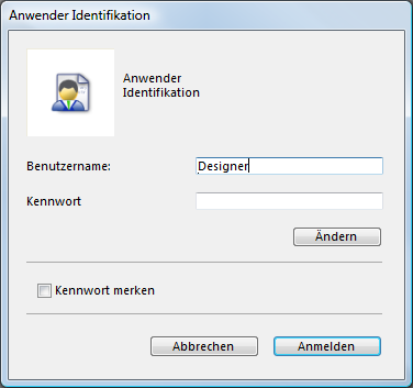 In diesem Dialogfenster wählt der Benutzer in der Benutzerliste seinen Namen aus und gibt im Eingabebereich sein Kennwort ein.