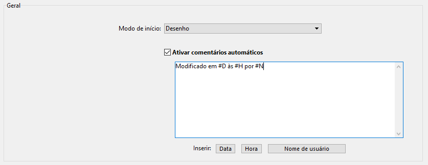 - Na página Geral, selecione a opção Ativar os comentários automáticos.
