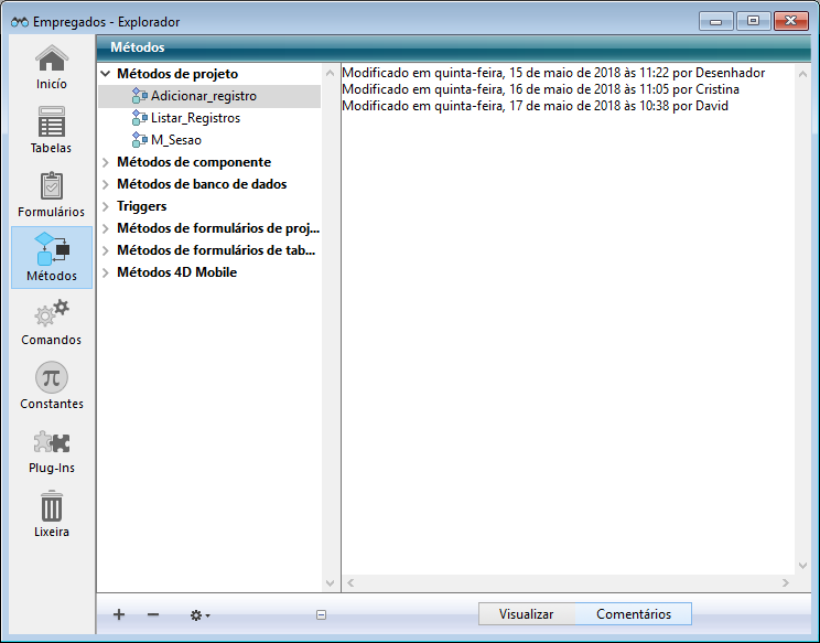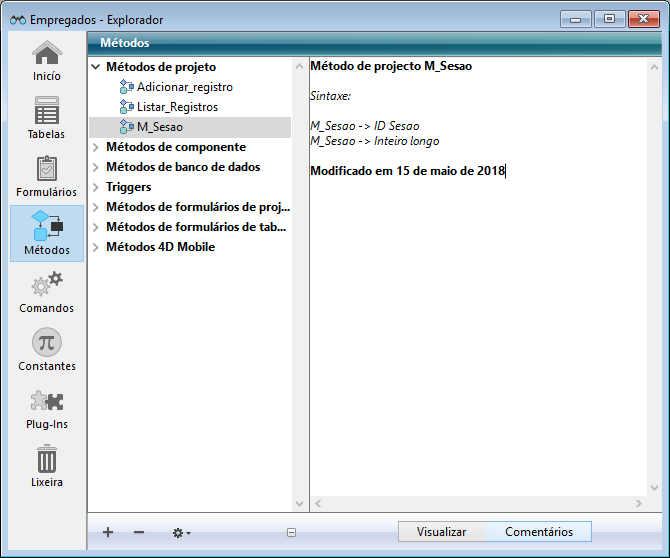 Adicionalmente, pode gerar comentários automáticos, ou seja, comentários cujo conteúdo é atualizado automaticamente por 4D quando um objeto é criado ou modificado.