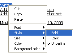 You can enhance the style of the comments (add bold or italics) and change the font attributes (font, font style, font size, or color) using a context menu. To modify the style of the comments’ text: