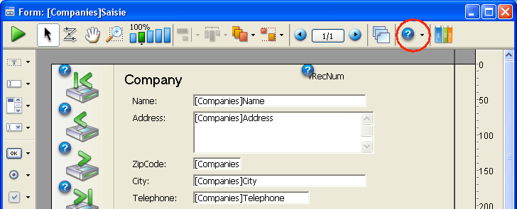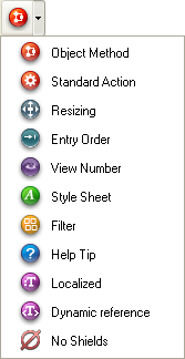 This function works as follows: Each shield is associated with a property (for example, Tips, which means “has an associated tip”). When you activate a shield, 4D displays a small icon (shield) in the upper left of each object of the form where the property is applied.