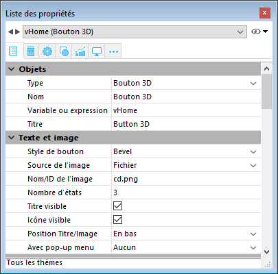 - Ce principe fonctionne également avec la bibliothèque d’images, les images associées aux objets (par exemple l’image d’un bouton 3D) et les champs ou variables en mode Application.