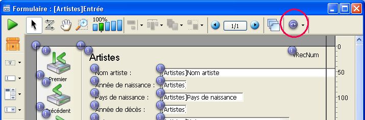 Le principe de cette fonction est le suivant : chaque badge est associé à une propriété (par exemple Infobulle, signifiant “dispose d’une infobulle associée”). Lorsque vous activez un badge, 4D affiche une petite icône (un badge) en haut à gauche de chaque objet du formulaire auquel s’applique la propriété.