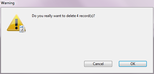 Quando um usuário faz clique no botão ou seleciona o elemento de menu, aparece uma caixa de diálogo de confirmação para que o usuário possa confirmar ou cancelar a eliminação: