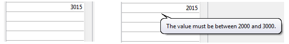 Estos atributos se pueden utilizar para controlar el rango de valores de entrada. Cuando se valida una celda (cuando pierde el foco), si el valor de entrada es menor que el valor min o mayor que el valor max, entonces se rechaza. En este caso, el valor anterior se mantiene y un mensaje de ayuda muestra una explicación.