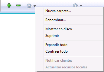 Igualmente puede utilizar un menú contextual en la lista de carpetas. Los comandos de este menú son lo mismo que los del menú de acción.