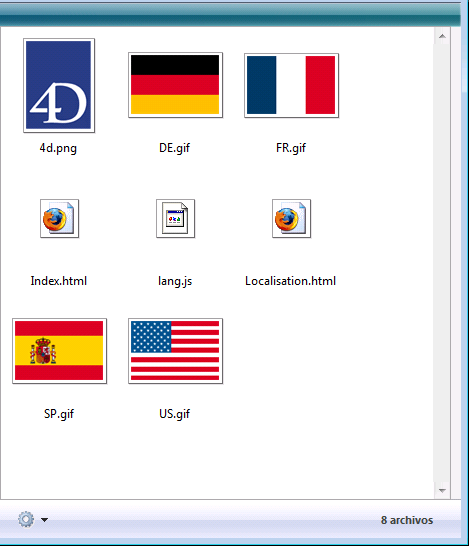 • En modo Vista en miniaturas, los archivos de la carpeta seleccionada se muestran en forma de viñetas. Los archivos de tipo imagen se previsualizan (si el formato de imagen es reconocido por 4D) y los otros tipos de archivos aparecen con su icono sistema.