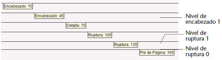 Los ejemplos de informes de esta sección utilizan niveles de ruptura y rupturas de encabezados. Para crear las áreas correspondientes a estos niveles, es necesario crear líneas de control adicionales.