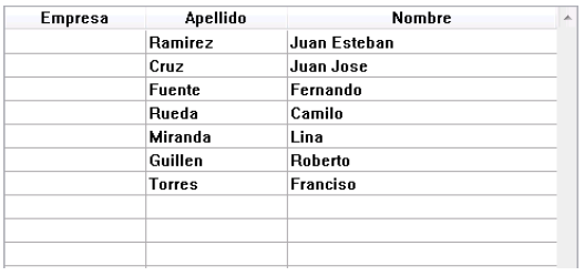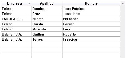 | Nombre | Apellido | Empresa |