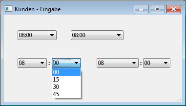 Im Formular erscheinen die Zeiteingabebereiche so: