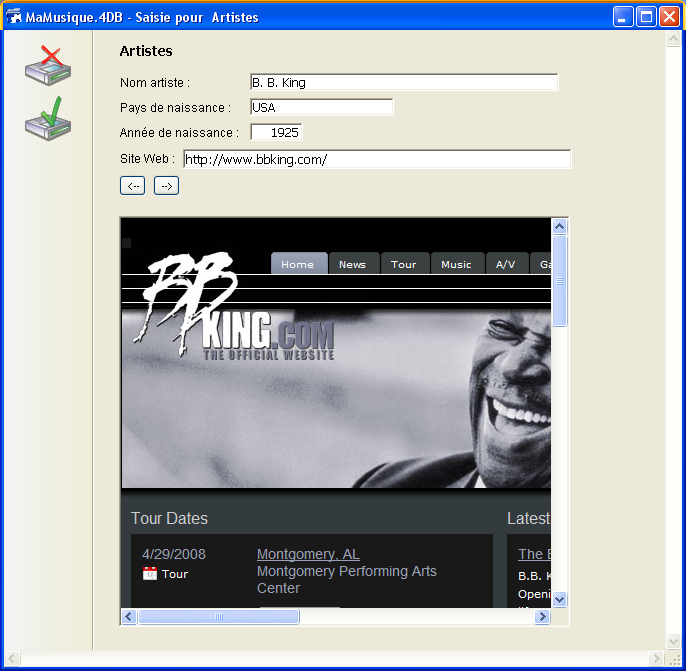 Deux variables spécifiques sont automatiquement associées à chaque zone Web : “URL” et “Progression”. Elles permettent de contrôler respectivement l’URL affiché par la zone Web et le pourcentage de chargement de la page affichée dans la zone Web. Par défaut, ces variables sont nommées respectivement nomZone_url et nomZone_progress. Vous pouvez modifier ces noms comme vous le souhaitez.