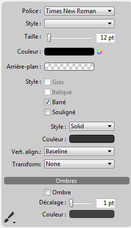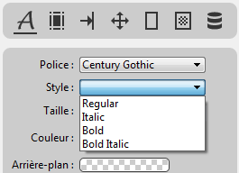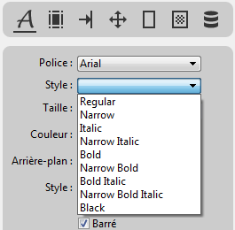 Les éléments disponibles dans le menu Style varient en fonction de la police sélectionnée :