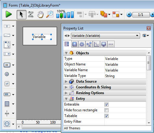 Ajoute une variable saisissable de type Chaine nommée "Variable". Vous pouvez utiliser la Liste des Propriétés pour modifier son type ou tout autre propriété.