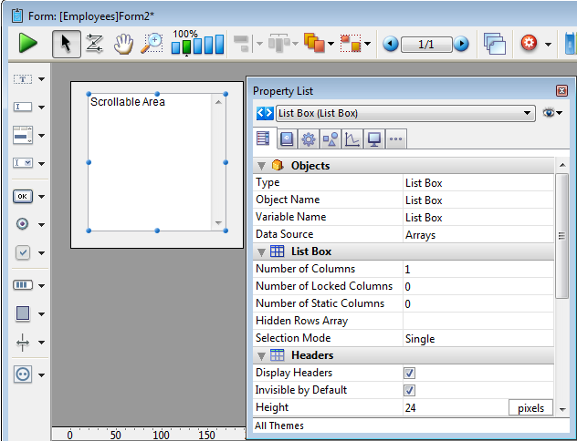 Pour plus d'information à propos de l'utilisation des zones de défilement sur les formulaires, référez-vous à la section Présentation sur les list box.