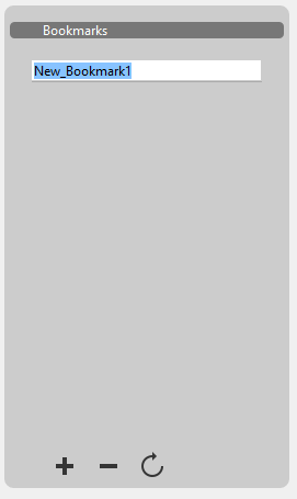 en bas du panneau : un libellé "Nouveau_signet1" apparaît dans la liste. Vous pouvez renommer un signet à tout moment : cliquer sur un signet sélectionné dans la liste le passe en mode édition. Les noms des signets doivent comporter uniquement des caractères alphanumériques standard.