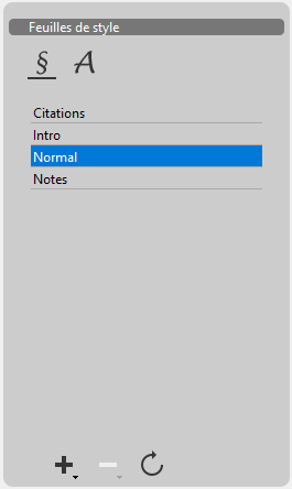 Ce panneau gère les feuilles de style des documents de la zone 4D Write Pro.