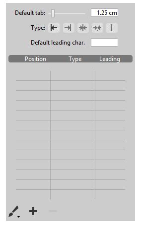 Ce panneau gère les tabulations des paragraphes dans la zone 4D Write Pro.