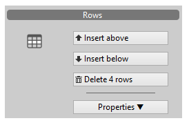 La section Lignes vous permet d'insérer/supprimer des lignes et de modifier les propriétés des lignes ainsi que de définir une ligne comme une ligne de rupture.