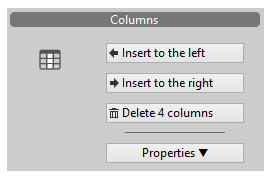 La section Colonnes vous permet d'insérer/supprimer des colonnes et de modifier les propriétés des colonnes.