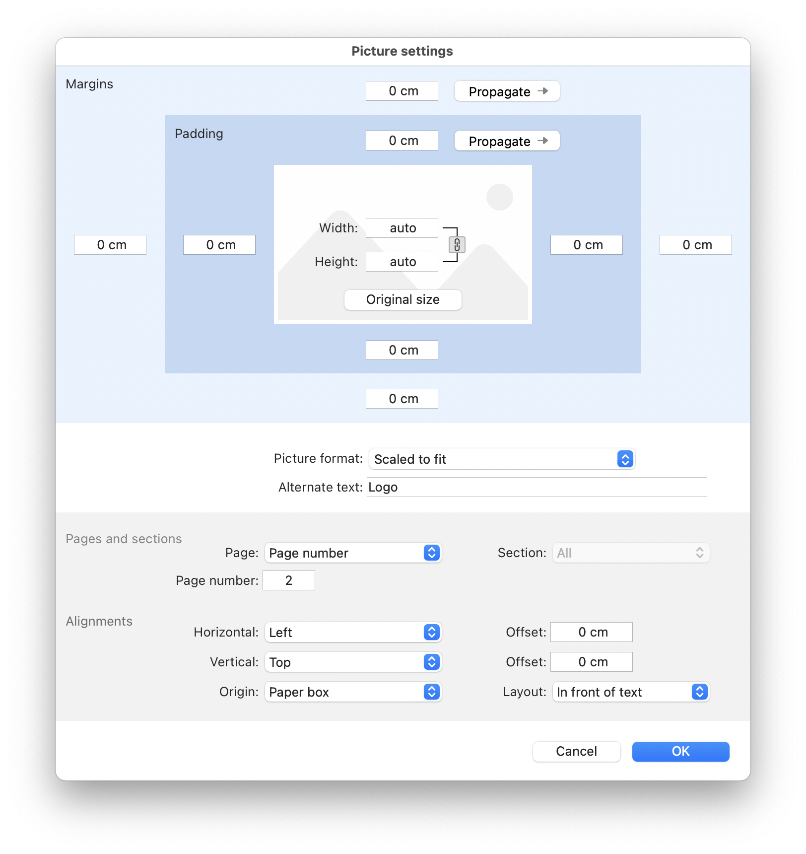 pour les images ancrées en mode page :